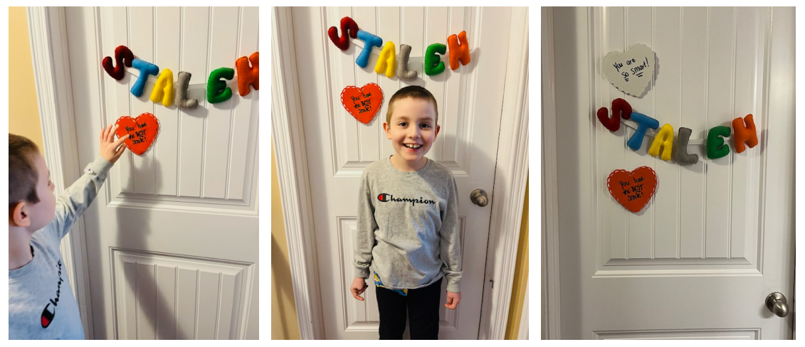 We always enjoy celebrating Valentine’s Day! It was a little difficult to find a way that Stalen could participate and have fun. He has a feeding tube so he doesn’t eat chocolate. He also has some developmental delays so he struggles with printing and writing out his Valentine’s.